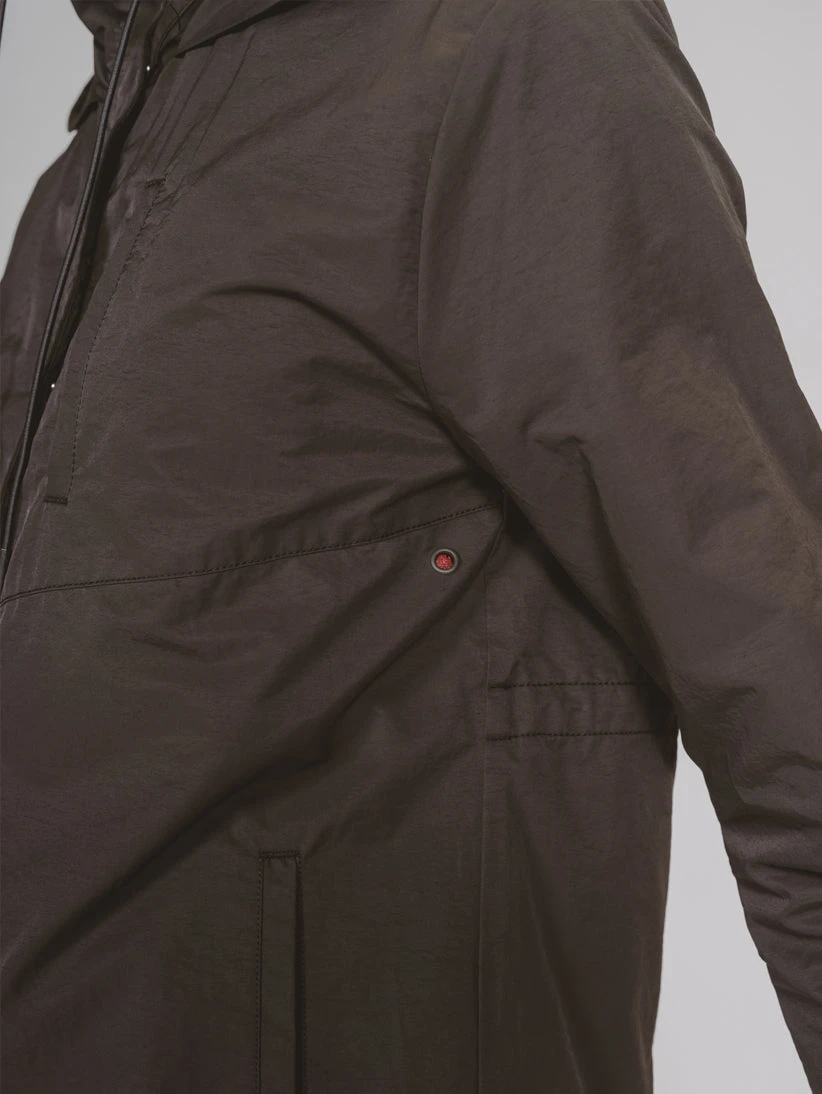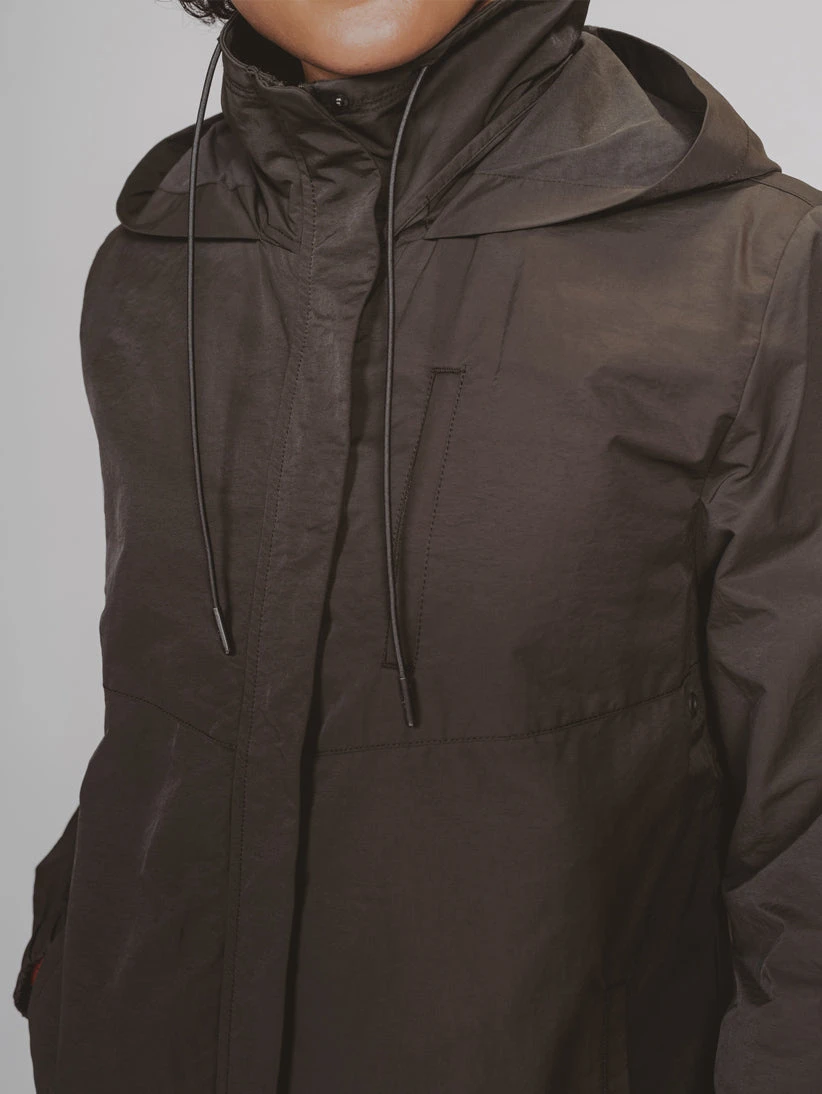 Elevated windbreaker style with water-resistant fabric, featuring our brand orange mesh liner. This style has a stowaway hood so it can be worn with or without the hood for versatile styling. Features a cool elastic drawcord at the collar. This elevated dark forest color goes with just about everything in our closet.