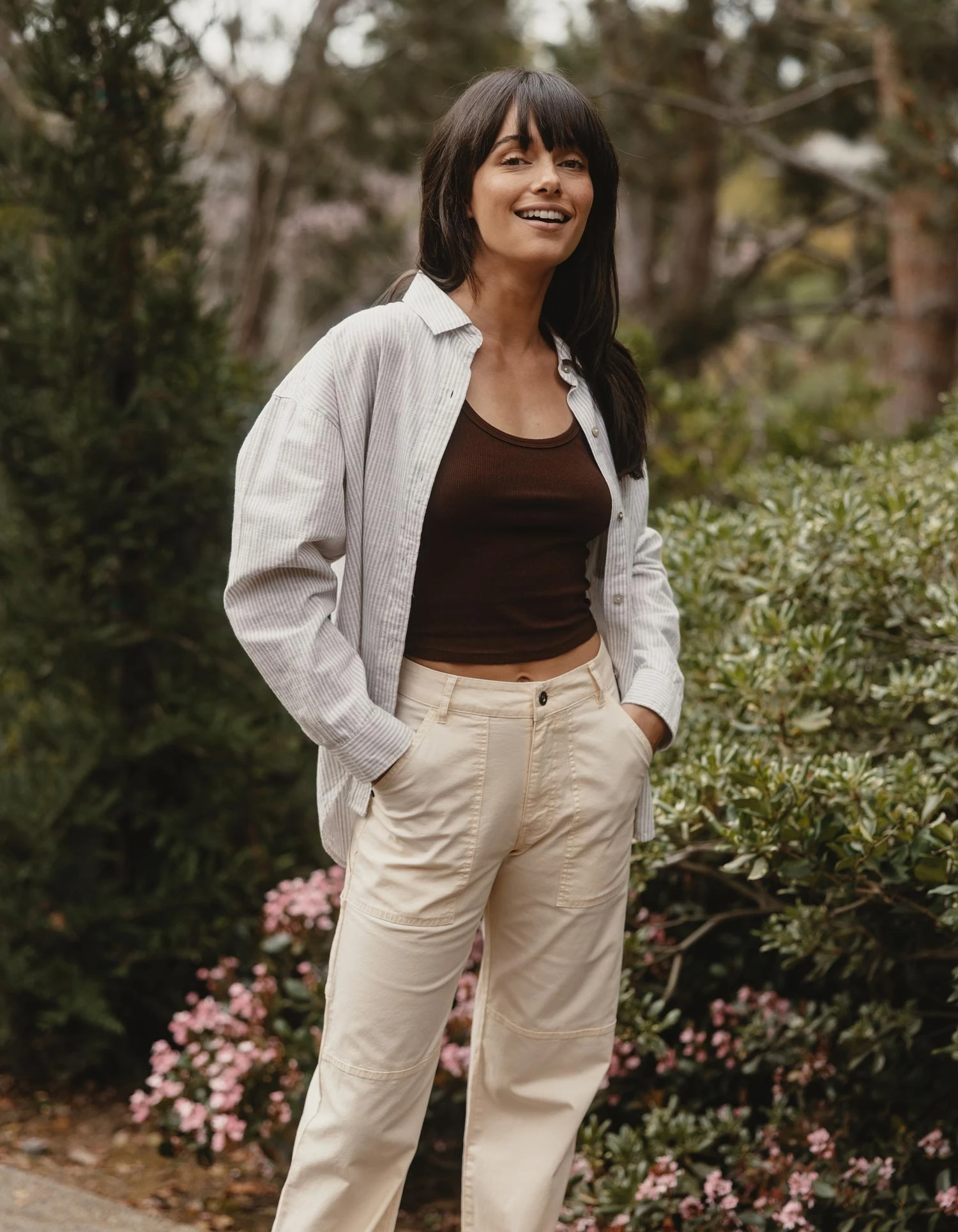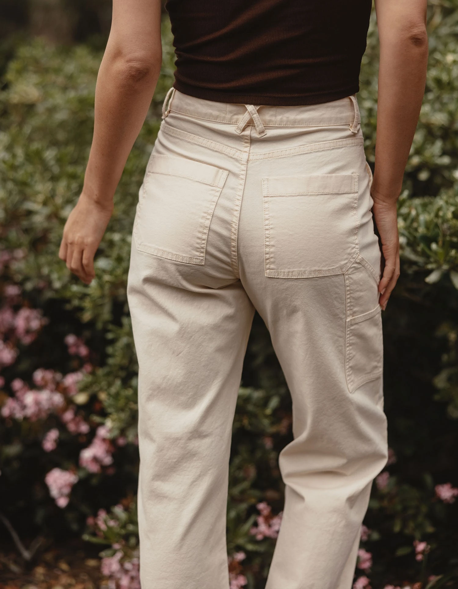 Durability meets style. Made from our James Canvas, this mid-weight fabric is perfect for spring, offering structure with a hint of stretch for comfort and mobility. This high waisted straight leg pant features classic workwear-inspired construction & details, including a painter’s pocket that adds both functionality and flair.