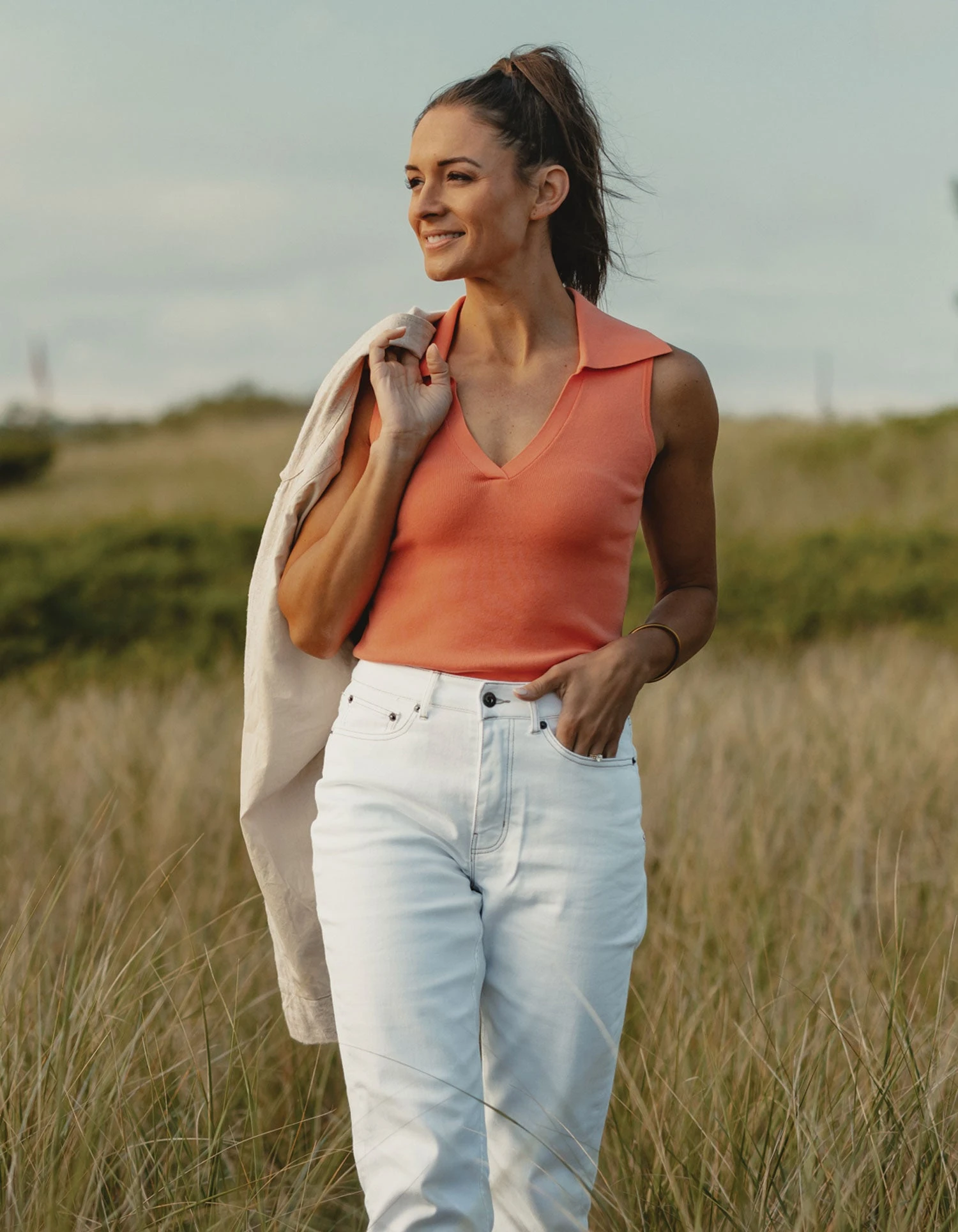 Crafted from a fine yarn with a refined and smooth texture, this polo offers a lightweight feel that’s perfect for the season. With a v-neck, exaggerated collar, and a light and smooth feel, it’s the ideal choice for warm weather. This fitted, sleeveless polo hits at high hip for a flattering silhouette.