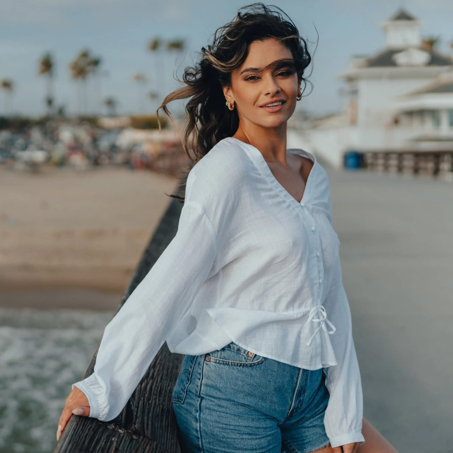 This light and airy button front top offers big feminine energy, so naturally we like it best with our favorite jeans. It’s called balance. This soft cotton top will quickly enter your weekly outfit rotation.