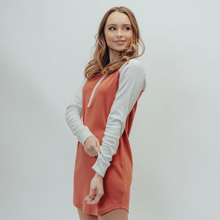 The sister style to our extremely popular Puremeso Weekender Dress. This dress offers pops of bold fall color and a vintage baseball sleeve look to add the perfect stand-out piece to your fall wardrobe.
