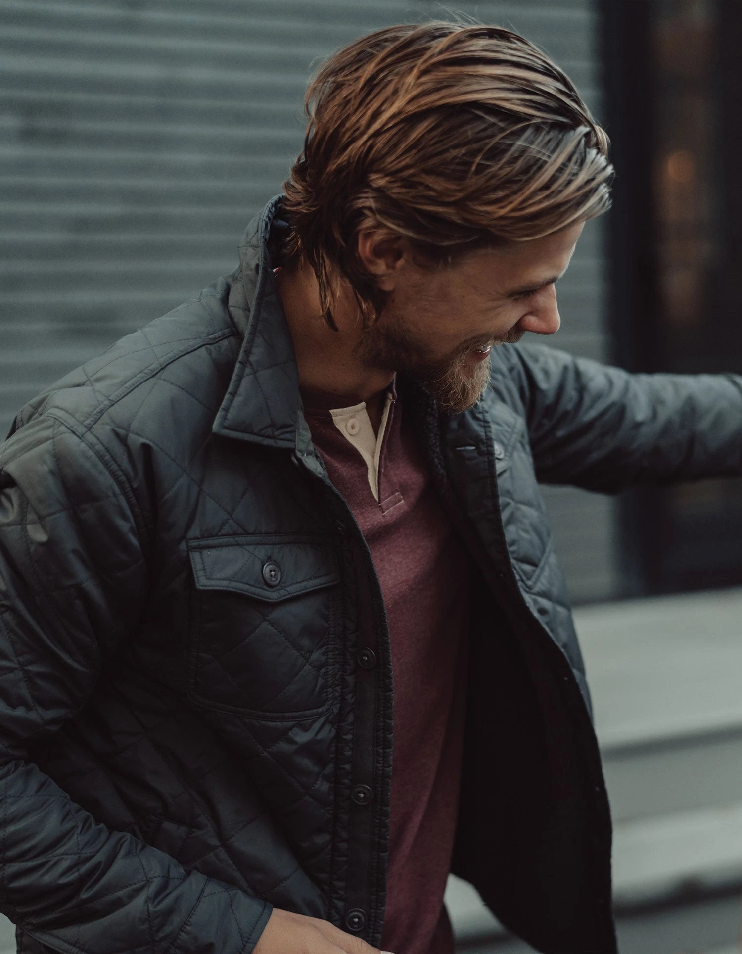 We wanted to design a sturdy all-weather jacket that was as packable as it was warm. Our Sherpa-Lined Shacket fits easily into a carry-on, and is warm and tough enough to stand up to cold, wet fall weather.