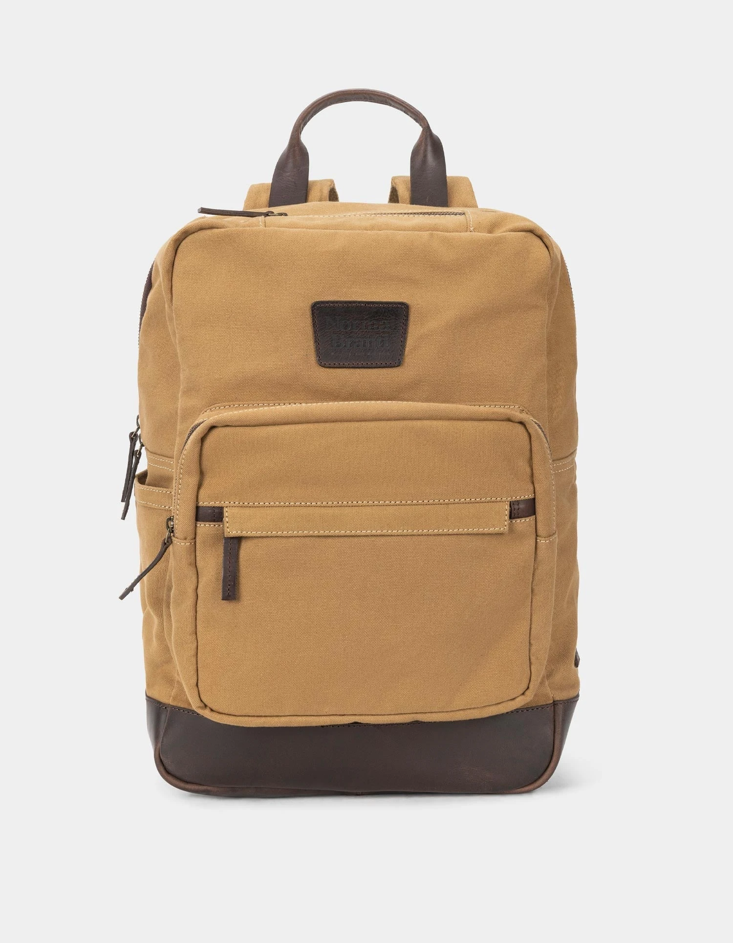 This Runaway Pack can fit everything the Top Side Backpack can, and more. Made of durable soft canvas, the leather details and convenient mesh pockets, laptop sleeve, and pen holders complete the look.
