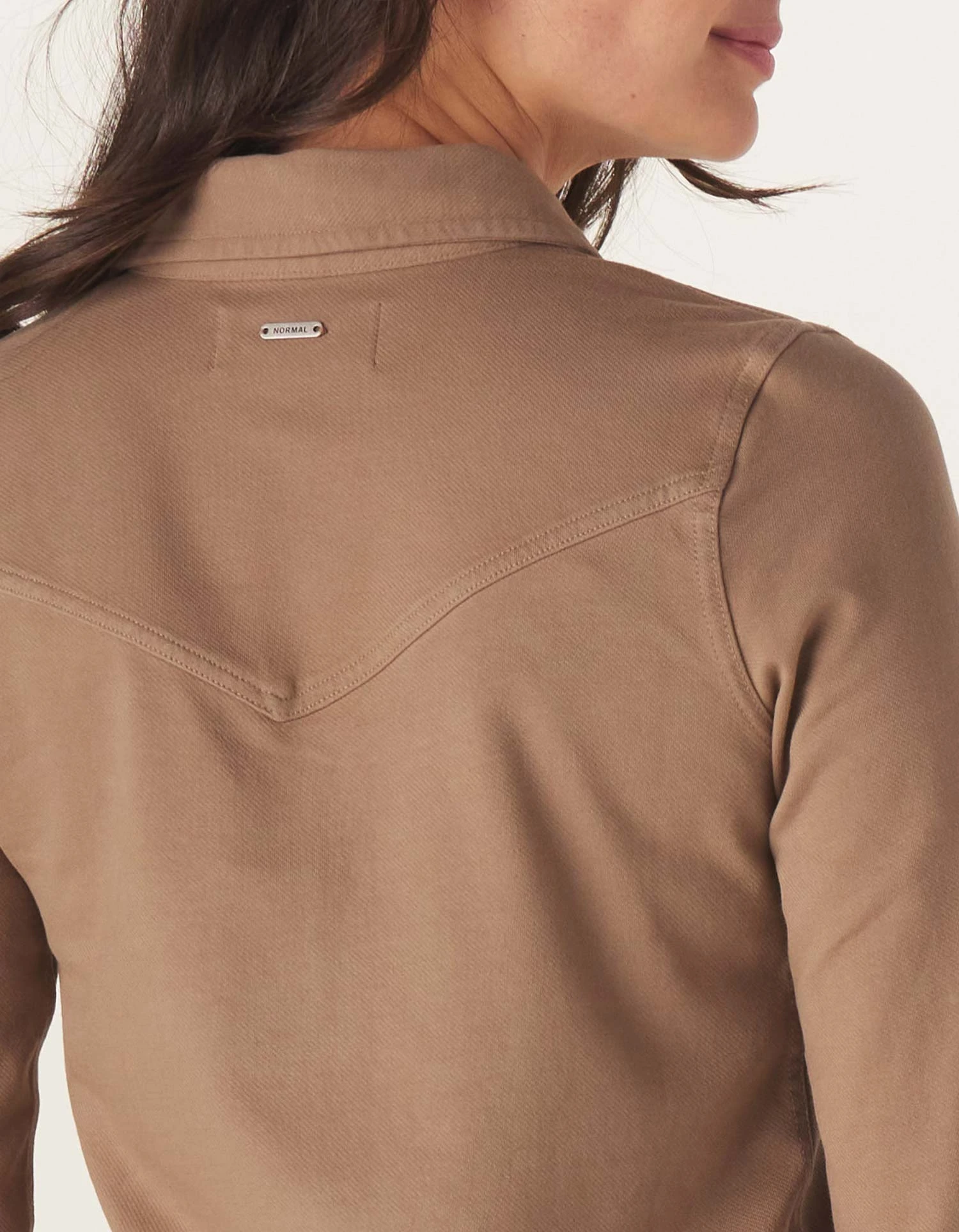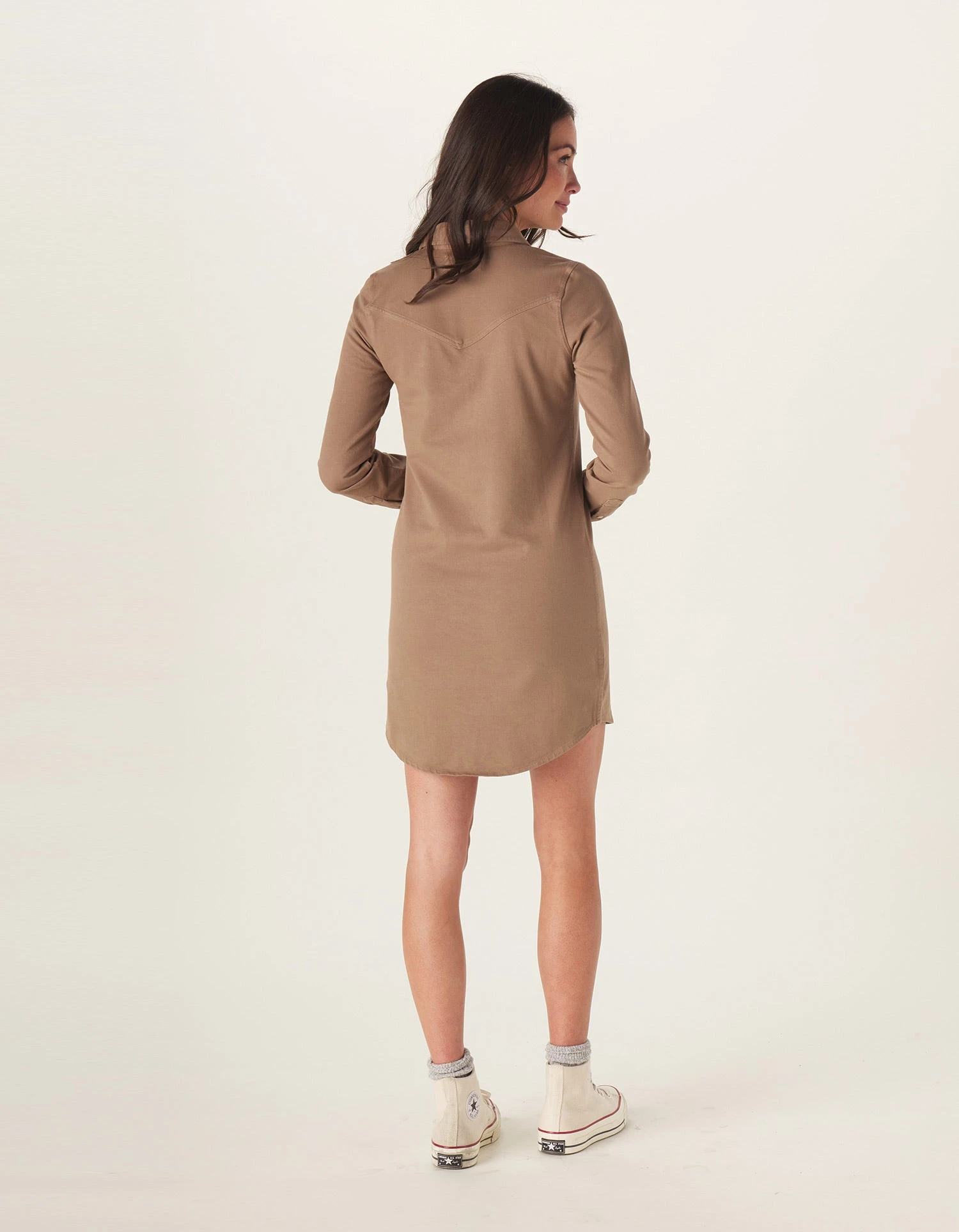Meet the ultra-soft shirt dress that was made to wear with big boots. With washed dye for a vintage look and a shirttail hem, the Tentoma Western Dress is the shirt dress that looks tailored enough to wear out, but that’s soft enough to want to live in. It has a smooth cotton finish on the outside, with just enough stretch to hug your curves in all the right places.