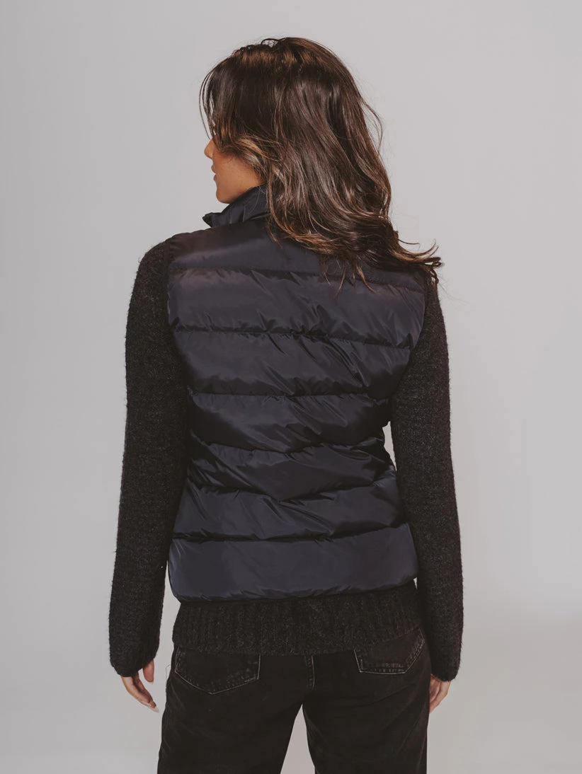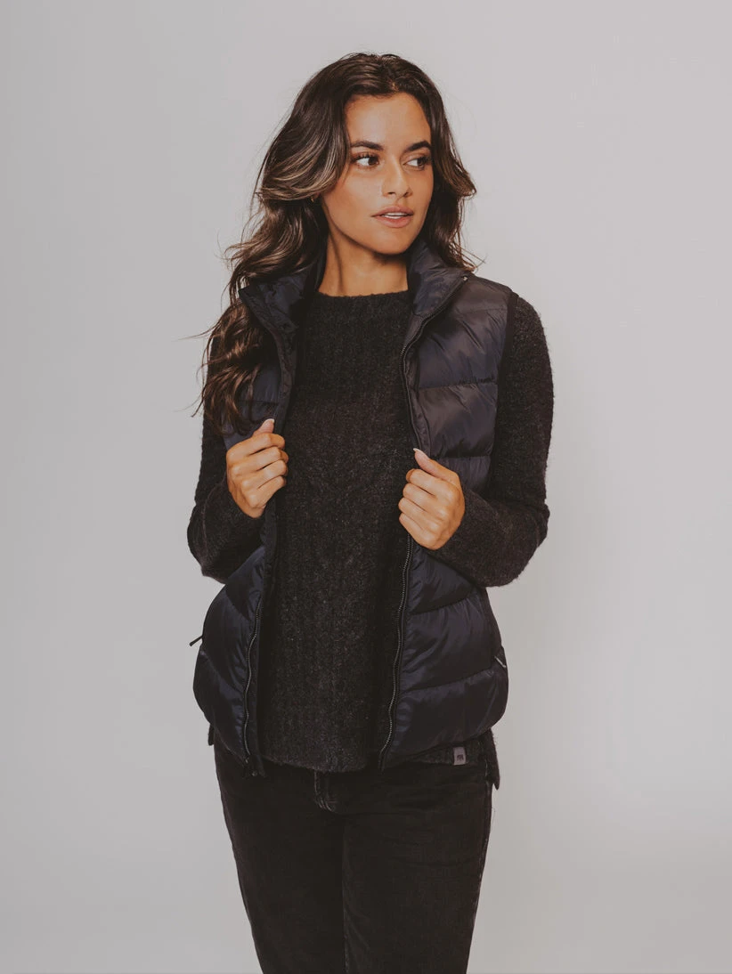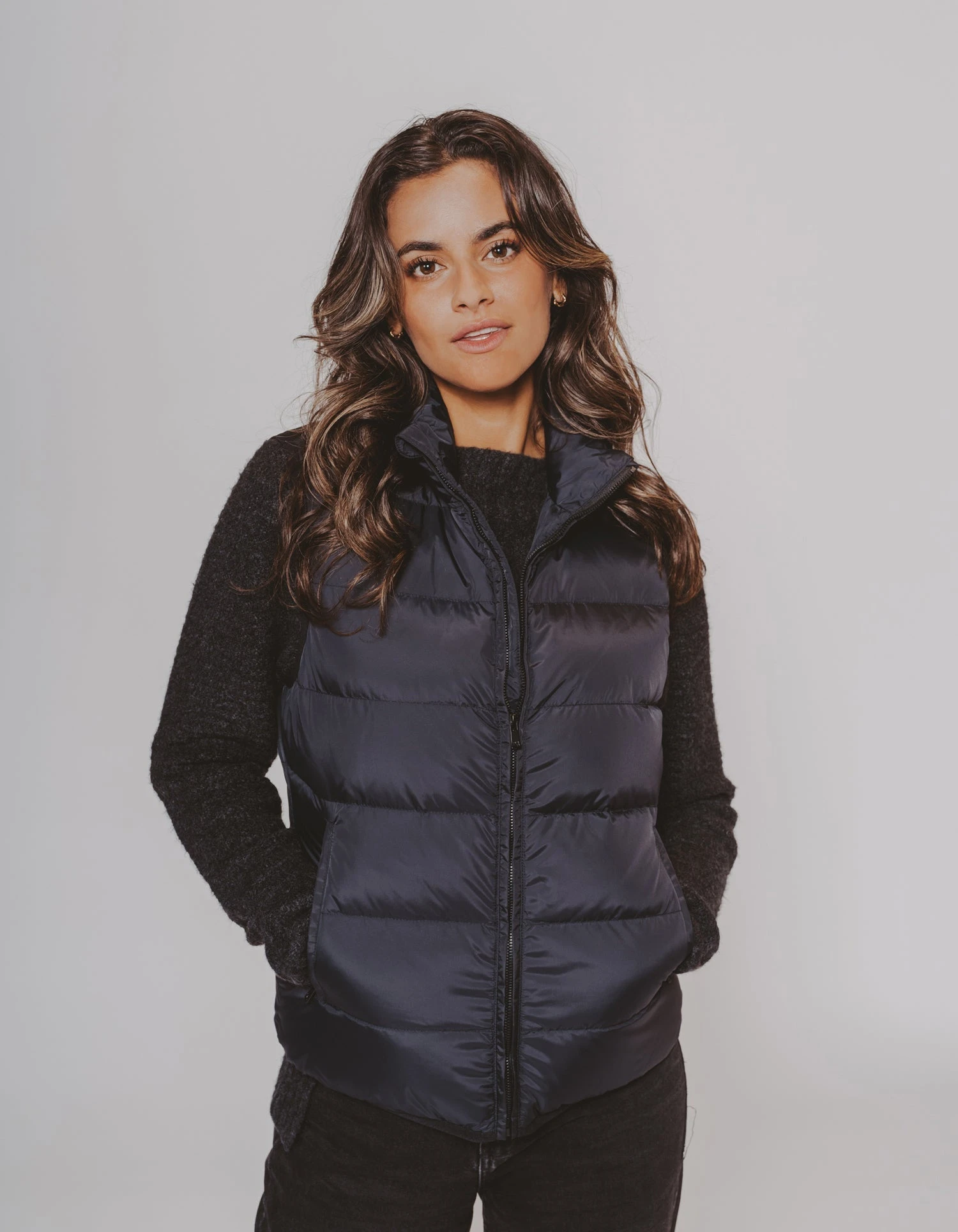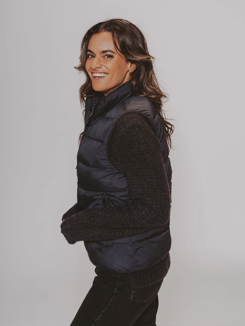 A companion piece to the men’s puffer vest, this features all the same quality and details but is made to fit a woman’s figure. Comes in the classics (black and navy) and includes a zipper front.